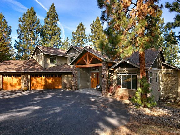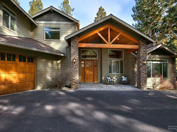 Live amongst the pines on the 9th fairway in the coveted golf community of Awbrey Glen! Upon entry you are greeted by expansive windows, vaulted ceilings w/ exposed beams & a grand rock fire place in the inviting great room. The main level hosts a generous master suite & large office (or additional bedroom) & upstairs are 2 bedrooms & a generous bonus room. The expansive rear deck offers indoor/outdoor living & the home is conveniently located within walking distance of the community pool, gym & clubhouse. Finishes include granite, hardwoods and stainless appliances