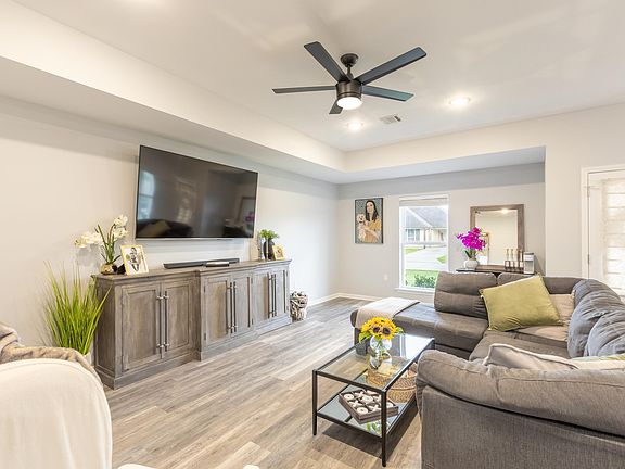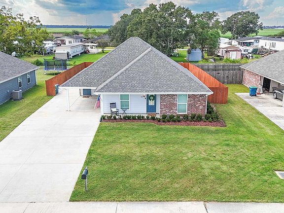 Welcome to 2574 Pineridge St. in Thibodaux’s Pineridge Estates Subdivision! This immaculate 3 bedroom, 2 bath home offers 1,483 sq. ft. of modern living with thoughtful updates and high-end finishes throughout. Built in 2018, this home has been meticulously maintained and it shows in every detail. The open floor plan is filled with natural light and features quartz countertops throughout, a large stainless steel farmhouse sink, soft-closing drawers, and recessed lighting. The stylish ceiling fans, fixtures and neutral wall colors add a modern touch. The spacious primary suite includes a large walk-in closet with built-ins, and an en-suite bathroom with a double vanity. All bedrooms are nicely sized with custom shelving in the closets. A secondary bedroom is currently styled with removable shelving and racks that resemble custom built-ins, creating a beautiful display space for clothing and shoes. Buyers have the option to keep these with the home. Step outside to a 10x22 covered patio (added in 2022) with gorgeous wood posts, overlooking the freshly fenced backyard with a sealed cedar fence for privacy. Additional updates include a new roof (just 5 months old), extended double driveway, and beautiful landscaping. Located at the end of a quiet neighborhood street, this home also comes with a termite contract for peace of mind. A transferable flood policy is available, though not required. Schedule your private showing today!