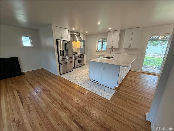 Remodeled brick ranch in University Hills. Main level has an open floor plan with a wood-burning fireplace, refinished hardwood floors and a modern, beautiful open-concept kitchen! The kitchen offers white shaker style cabinetry, white quartz counters, undermount sink and a large island with bar seating. High-end appliances, including Wolf gas range and range hood, Kitchen Aid dishwasher, and a pot filler. The main level also offers a dining room, three nicely sized bedrooms and a full, modern, remodeled bathroom.
