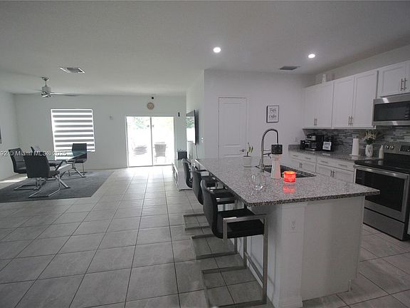 Discover this stunning new construction located in a peaceful neighborhood! This beautiful property features 4 spacious bedrooms, 2 modern bathrooms, and sits on an impressive 10,000 SqFt lot offering endless possibilities. Move-in ready and semi-furnished, kitchen with granite countertops, a brand-new backsplash, and all-new stainless steel appliances. Enjoy the convenience of a two-car garage with an automatic door, a long driveway providing ample parking space, plus wide side entrances perfect for storing your RV or boat. The large backyard is fully fenced for privacy and security, with plenty of room for a pool, has a cozy fire pit. Perfectly located just minutes from the Turnpike, 20 minutes from the beach, and close to supermarkets, shops, gyms, urgent care, and restaurants.