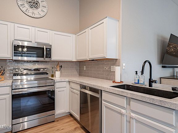 The open-concept layout features a bright & airy great room flowing effortlessly into the kitchen & dining area. The updated kitchen includes painted cabinetry, new countertops & backsplash, new sink & faucet, & all new stainless steel appliances.