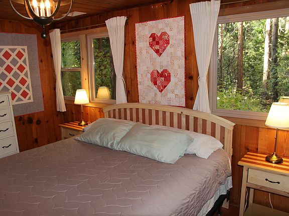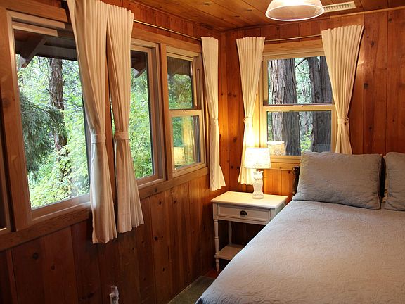 This log cabin was built in 1922, making it a historic treasure. It has a living room, two bedrooms, a bathroom, and a kitchen. Major upgrades in 2016 include new roof, new driveway, electrical re-wire, plumbing re-pipe, re-surfaced hard-wood floors, new stove, new refrigerator, new light fixtures, new bathroom toilet and sink, and more. This cabin provides the experience of a historic cabin renovated to be safe and comfortable. The location is the best feature about this rental. Strawberry Creek runs through the backyard and can be seen from the patio. Birds, quarrels, and deer can be spotted on the half acre property, and the cabin is a short walk to Idyllwild. This cabin is away from the street, making it secluded and charming. Property Managers and Real Estate Agents: Do not contact. No subleasing. Not for sale. No smoking. No Pets. No shoes inside.