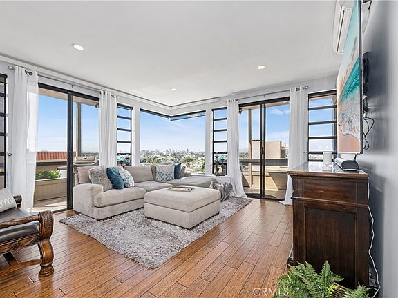 Welcome to this exquisite top-floor condo with sweeping views featuring 2 bedrooms and 2 bathrooms. This charming residence is filled with luxurious upgrades, including rich hardwood floors and custom tile throughout. The recently renovated kitchen shines with a skylight that floods the space with natural light, complemented by white shaker cabinets, sleek quartz countertops, stainless steel appliances, and a large island—perfect for both casual meals and entertaining. The modern, stylish bathrooms elevate your daily routine with premium finishes. The primary bedroom is a true retreat, offering his and hers closets and a large, spa-like bathroom with smart bathroom features. Step outside to enjoy two private balconies, easily accessible via sliding glass doors, where you can unwind while taking in the stunning views. Additional highlights include a semi-private garage with storage, ensuring plenty of space for your belongings. The condo complex also provides a range of exceptional amenities, including a community pool, a recreation room, and a rooftop deck complete with a reclaimed wood bar and fire pit—ideal for relaxing or hosting gatherings. Don’t miss the opportunity to own this spectacular condo, boasting unbeatable views, modern finishes, and a truly prime location.