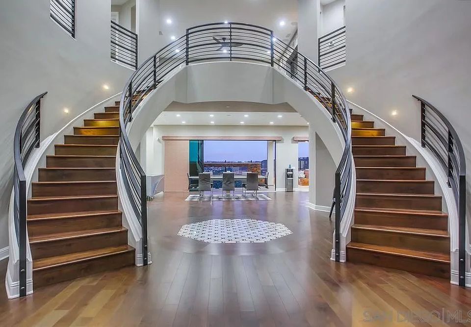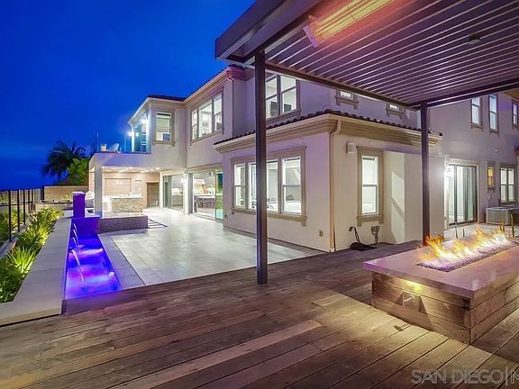 Immaculate and rare Serrano Toll Brothers Robertson Ranch 2-story, 3 car-garage modern estate home in the intimate gated Bluffs neighborhood. No expense spared with over $1 million in upgrades throughout. Sitting at the highest point within the community offers panoramic views over the city, hills and mountains and some ocean view. A grand wrought iron dual staircase greets you with over 20 ft. ceilings. The open 1st floor flows smoothly from great room with linear fireplace to spacious dining and gourmet kitchen and opens up to the backyard through 2 sets of stacking doors for indoor/outdoor living. One bedroom down with private bath and an office offer a separation of space from the owner's suite, custom loft and secondary bedrooms upstairs. A chef's dream kitchen with abundant modern cabinets, built-up exotic granite counters with full splash, Wolf appliances, walk-in pantry plus butler's pantry. Owner's suite includes retreat and deck as well as luxurious bath & custom closet & has access to laundry for convenience. Situated between 2 single story homes and high up over the homes below allows for more privacy and to maximize views from both floors. Exterior is an entertainer's dream with custom spa, 2 fire & water features, full outdoor kitchen with all the extras including dishwasher, refrigeration, BBQ with warmers & beer tap, turf area & added outdoor full bath with shower. Home has loads of technology including e4 Control System for whole house automation. Central vac, electric car charging pre-wire & solar system. High end furniture is negotiable.