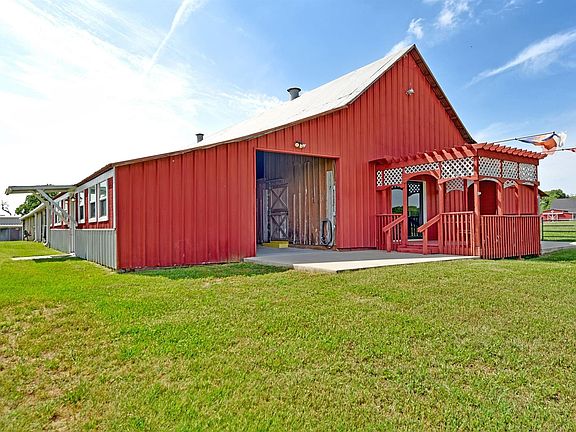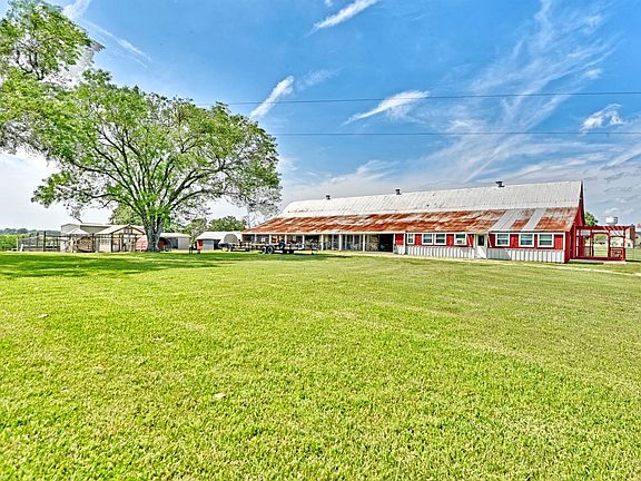 Escape to Southern tranquility on this picturesque 40+/- acre ranch retreat nestled amidst quiet, rolling grasslands. This versatile country estate offers a unique blend of charm and functionality, featuring a vintage red barn currently operating as an event venue, a stocked fishing pond, a chicken coop, multiple storage barns, and a paved sport court. The inviting two-story residence boasts a three-car garage, a balcony perfect for enjoying the views, and two cozy wood-burning fireplaces in the living and dining rooms. The rustic island kitchen flows seamlessly into the naturally lit dining area, creating a warm and inviting space. Step outside to your private oasis with a covered porch, a complete outdoor kitchen and grill area, and a sparkling pool featuring a delightful water feature and waterslide - ideal for relaxation and entertaining.
