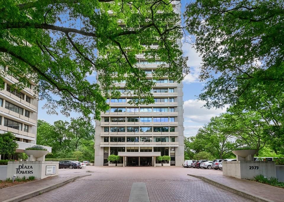 The lowest price per sq/ft in Plaza Towers! This grand half-floor space high above Buckhead's "Golden Mile" is ready for an offer and your special touches. Floor-to-ceiling windows face North, East, and West and multiple balconies offer expansive vistas of the Buckhead skyline and intimate views of Garden Hill's "Duck Pond". The primary bedroom features separate his and her baths, his with a sauna. Ample closets and storage abound within the unit. The twin buildings feature a plethora of amenities including a resident event space, fitness center, 24-hour concierge, guest suites, meeting room, on-site management, and even a dog park. HOA fees cover all utilities except cable/internet providing turn-key ease of living. This unit is virtually staged for the internet.
