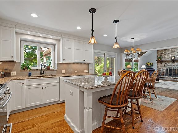 Welcome to this stunning 2-story home, perfectly situated in highly desirable River Woods! Step inside to a grand foyer with hardwood floors that flow seamlessly into the kitchen, dining room, and family room. The formal dining room sets the stage for memorable gatherings, while a private back office offers a quiet retreat with direct access to the deck. The spacious family room is filled with natural light from the bay window and skylight and is anchored by a cozy gas log fireplace-ideal for relaxing evenings. The remodeled chef's kitchen by Normandy is a true showstopper, featuring beautifully updated cabinetry, Cambria quartz countertops, a center island, and a sunlit eating area with a patio door leading to the backyard patio. Upstairs, the luxurious primary suite includes a private sitting room, his and hers walk-in closets, and a beautifully updated en-suite bath with a jetted tub and separate shower. Three additional bedrooms and a second full bath complete the upper level. The backyard is an outdoor retreat, showcasing multiple entertaining and relaxation spaces including a deck, paver patio with pergola, complementary hardscaping, and mature landscaping. Additional highlights include a 2-car garage with ample storage and a full basement waiting for your finishing touches. All this in a prime location near award-winning Naperville 203 schools, parks, playgrounds, shopping, dining, and vibrant Downtown Naperville. Don't miss your chance to make this River Woods gem your new home!