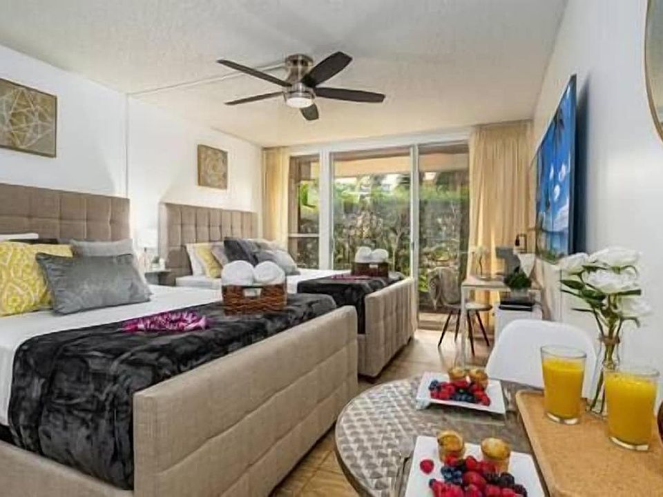 Welcome to your tropical home base in Kihei. This newly renovated, ground-level condo is beautifully furnished and designed for comfort and convenience. The unit features two plush queen beds with premium memory foam mattresses, a 65-inch HDTV with Netflix, and cooling comforts like air conditioning and a new fan. Relax with a garden view from your private lanai or head out and explore the island just steps from your door.