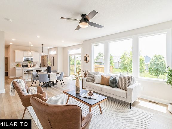 A Fantastic New Jerry's Homes plan. The Clark. This 5-bedroom home is under $440K and is located in the popular Kettlestone Ridge neighborhood. The front porch welcomes you into a bright and open main level with 9-foot ceilings, an open-concept great room, and a kitchen featuring an island, a perfect coffee bar, a walk-in pantry, quartz countertops, and a stainless steel appliance package. You'll also find LVP throughout.The main level also includes a locker/drop zone, a half bath, and a bedroom or office. The home is filled with natural light, thanks to an abundance of windows and elevated transoms. The oversized great room is perfect for game nights or cozy movie nights by the fireplace.Upstairs, you'll discover four spacious bedrooms and a convenient laundry room. The primary suite is a true retreat with a tray ceiling, a huge walk-in closet, a spacious bathroom with double sinks, a walk-in shower, and a separate toilet room. The Standard basement is ready to be finished for future fun, and the bathroom is already stubbed.