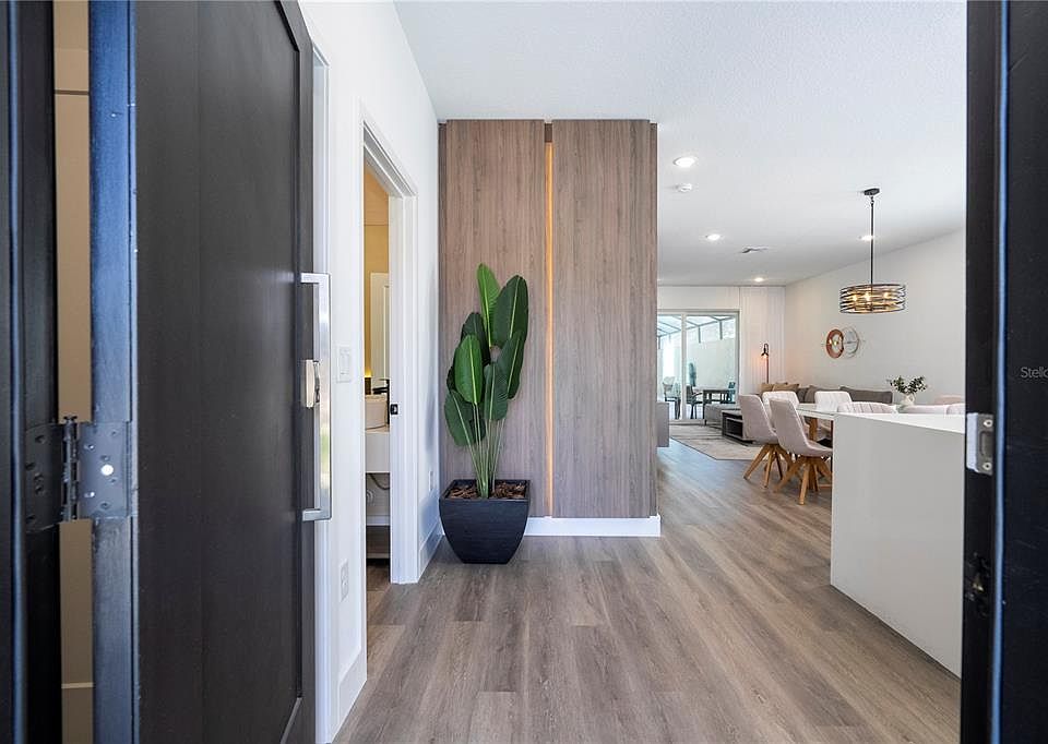 Fully upgraded from floor to ceiling, this luxury townhome blends contemporary elegance with high-end functionality — designed specifically for short-term rental success. Located in the exclusive Doppio Westside community in Kissimmee, just 15 minutes from Walt Disney World, this 5-bedroom, 4.5-bath home features an open-concept layout with spacious integrated living, dining, and kitchen areas that flow seamlessly to your own private heated pool. The kitchen is a showstopper with two oversized islands, Level 5 quartz countertops, designer backsplash, slatted wood detail, and Whirlpool stainless steel appliances. All cabinetry throughout the home includes soft-close features and matte hardware for a sleek, modern finish. Each of the five bedrooms is designed with comfort and rental flexibility in mind — including four full en-suites and one located on the first floor. The bathrooms are finished with high-end porcelain tile, glass shower enclosures, built-in niches, and vessel sinks in select locations. Luxury vinyl plank flooring runs throughout the entire home — no carpet anywhere — and 5.5" square baseboards give a clean, elevated look. Additional features include PVC windows, a smart front door lock, a lockable owner’s closet, a hybrid water heater, EcoBee smart thermostat, and a two-car driveway. Construction is full concrete block, including second floor, with an insulated "sandwich" roof system and rubber membrane roofing designed for durability and energy efficiency. Located within a gated community, Doppio Westside offers resort-style amenities such as a lagoon-style pool, full-service restaurant, clubhouse with front desk concierge, fitness center, playground, convention center, and EV charging stations — all exclusively zoned for short-term rental with no public school restrictions. Don't miss this opportunity to invest in one of Central Florida’s most unique STR communities — fully upgraded as standard, and built with both guest experience and investor return in mind.