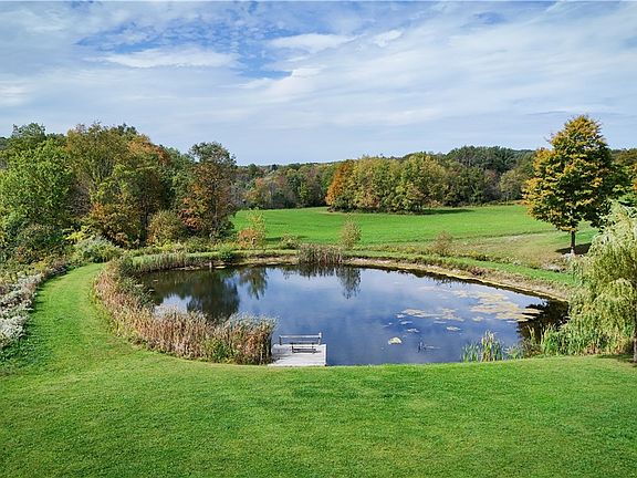 At the heart of it all lies the pond — over a third of an acre of calm water, reflecting the sky like glass. A small dock stretches out toward the surface, a perfect perch for early morning fishing or evening sunsets. The pond is stocked and thriving, a natural draw for wildlife and quiet moments alike. It’s the kind of place where you can hear the world slow down — the rustle of cattails, the call of a heron, the soft echo of ripples on the water.