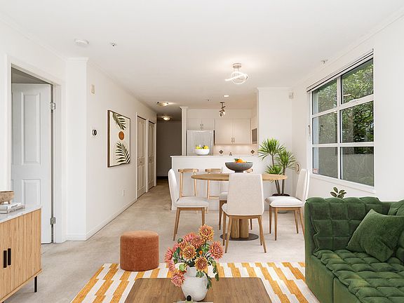 South-facing corner homeSilestone quartz countertopsSleek white cabinetryPremium appliancesBreakfast barCozy gas fireplacePrivate sunny garden patio