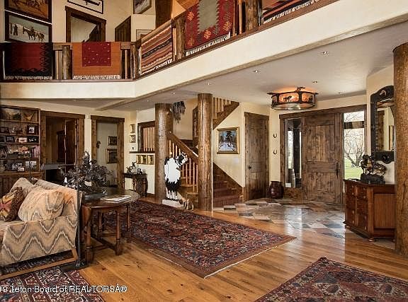 Enjoy a feeling of wide-open spaces, while being conveniently located to all of Jackson's amenities. Set on 18 beautifully landscaped acres, this property is well suited to the person looking for a serene and quiet setting, without being remote. The 6,500 sq ft, 4 bedroom 4.5 bath home features an open floor plan and abundant windows to ensure that the Tetons are front and center at every opportunity. Highlights include quality appliances and fixtures, main floor and 2nd floor master bedrooms, 2 guest bedrooms with en-suite bathrooms, a wet bar, an office, and a spacious deck with hot tub and outdoor fireplace. A separate guest house offers 2 bedrooms and 2 bathrooms. An adjacent 18 acre lot that includes a 5,680 sq ft heated barn with 5 stalls and riding ring is also available.