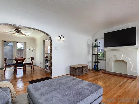 Welcome to 2575 Wightman Street, tucked in the heart of North Park—one of San Diego’s most vibrant and sought-after neighborhoods. This charming 2-bedroom, 1-bath Spanish-style home, built in 1929, beautifully blends timeless architectural detail with modern livability. Step into the inviting living room accented by an elegant coved ceiling and warm natural light. A graceful archway leads to the dining room, featuring an inset ceiling and French doors that seamlessly connect indoor and outdoor spaces. (See supl)