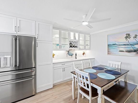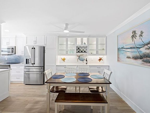 ompletely renovated unit located in this gulfside tropical paradise which is all about the beach at this charming 2-bedroom, 2-bath, 5th floor condominium. Panoramic views from the lanai, kitchen and living area. Features include white shaker cabinets, stainless appliances, tile throughout, comfortable living area with sofa, chairs, flat screen TV, and dining for 6 people. Primary bedroom includes king bed with ensuite bathroom and walk-in closet. The guest bedroom feature two double beds and walk-in closet. Bathrooms are walk-in showers with handicap handlebars in each shower. There are private balconies from both the primary and guest bedroom. Wireless internet and cable included for your convenience. Washer and Dryer in unit or there is a large capacity washer and dryer in the common laundry room. Bonita Beach Club is a beachfront, tropically landscaped, gated community located on Hickory Blvd at the very North end tip of Bonita Beach! Offering many amenities, you are sure to never get bored. Amenities include an 80-ft. heated community beachfront pool, fitness center, tennis courts, 4 Pickleball courts, yoga and water aerobics available during season, billiards room, library, social room, project room, game room, lounge, BBQ area, shuffleboard, car wash area, fishing, direct beach access and so much more! All amenities have been renovated and are beautiful design with stunning decor.