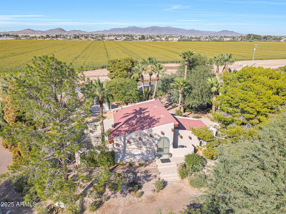 Are you looking for something other than those ''Cookie-Cutter Homes,'' with narrow street, and HOA fee and regulations? Then give this home a good look. Located just outside of ''old-town Buckeye,'' you'll find 1.389 acres of land and peaceful quiet. The Sellers built it with much love and imagination over 50 years ago. This tri-level home has the kitchen, dinette, dining room, office, and one bathroom at ground level. From the entrance and kitchen you can look down into the beautiful living room with fireplace through custom wrought iron railings. From the living room, you descend a few stairs to find a large primary bedroom & bathroom, and two smaller bedrooms. A redwood building with porch houses a new Bullfrog Spa.