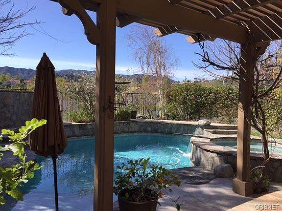 Beautiful Pool home in the heart of Stevenson Ranch, with awesome view location! 3+oversized Bonus room- perfect for office/ guest room or could be 4th bedroom if enclosed; Custom Distressed Dark Stained Hardwood Wide Plank Flooring in entry, living room, dining room and family room; Wood Blinds throughout; Kitchen has all upgraded Kitchen Aid Stainless appliances including Two Drawer Refrigerator, oven/range, microwave and QuietSound dishwasher; Surround sound system downstairs & in Bonus room; Touch pads for lighting and fan in Bonus Room; NEST Thermostat; Tile flooring in kitchen; 3 Ceiling fans; Mirrored closet doors in bedrooms; Sound system carries upstairs; Tile Fireplace in Family Room; Vaulted Ceilings, Can lights; Washer & Dryer also included! Outside in back is a beautiful flagstone pool and raised spa, flagstone decking, patio cover, BBQ Island with insert for refrigerator; great views from back and especially from master bedroom! 2 car garage with workbenches included. Super house, won't last!