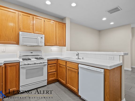 This charming 3-bedroom, 2.5-bathroom home is located in the desirable Palisades Community of Stevenson Ranch, offering a perfect blend of comfort and convenience. The spacious two-story layout features a bright living room with a cozy fireplace, ceiling fans, and ceiling lights throughout. The kitchen includes modern appliances such as a microwave, stove/oven, and dishwasher, along with a stackable washer and dryer hookup. The master suite features both a sliding and walk-in closet, plus an en-suite bathroom with a vanity mirror. Additional bedrooms offer generous space and ample closet storage. With a mix of plush carpet and sleek tile flooring, central heating, and air conditioning, this home ensures year-round comfort. Residents of The Palisades enjoy access to amenities like a sparkling pool, hot tub, picnic area, and playground, making this home an ideal choice for those seeking a vibrant community in Stevenson Ranch. Owner pays for trash and water. Tenant pays for all other utilities.