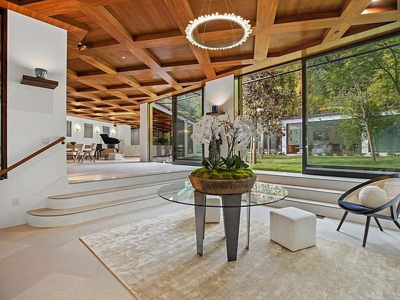 An elegant, sexy take on a Mid-Century Modern w/a tropical aesthetic, located on one of Los Feliz's premier streets. Set back behind gates, up a long, private drive sits this new build masterpiece hidden from the street. Completely custom w/many bespoke features such as coffered Walnut ceilings, softly honed limestone flooring and white Onyx skylights. True indoor/outdoor living w/custom floor to ceiling steel & Fleetwood doors opening to lush yard & pool...like being on vacation at home! Stylish, new concept kitchen w/Carrera marble, Sub-Zero and Miele appliances and custom Walnut cabinetry. 4br./5ba. Including screening room and private office w/sitting area. Large, romantic Primary bedroom w/views of the city, surrounded by lush foliage and balcony w/outdoor shower. Rooftop entertainment deck w/views of the city and beyond. Private backyard paradise w/pool, and large guesthouse/entertainment room w/built-in bar, steam shower, bath and temperature controlled wine room. Truly one of the most exciting homes Los Feliz has ever offered....A one of a kind retreat!.