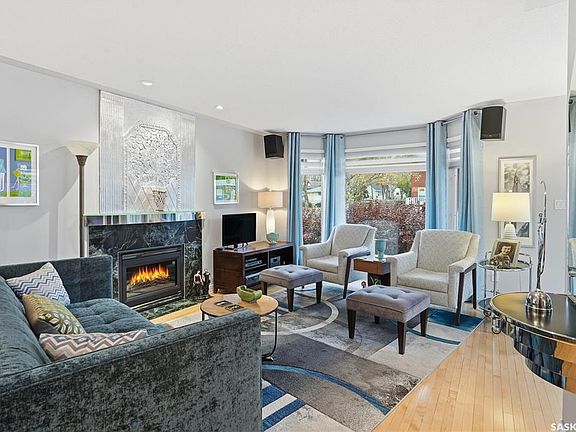 Welcome to 2576 Cameron Street. This charming 2 story is located in the desirable Crescents Neighbourhood. Immediately you will notice the attractive curb appeal with a large front and side yard that has been beautifully landscaped. Custom Ripplinger build distinguished by meticulous attention to detail, tastefully decorated and offering 1588 square feet of living space. As you enter you will be greeted by the large foyer and open concept living space. Large windows allow for an abundance of natural light. Living room features maple hardwood flooring that continues throughout the main level, lovely drapery which is included, and a gas fireplace with marble surround and custom plaster feature wall. Living room speakers can also stay if the buyer so chooses. The spacious dining room boasts a ceramic tile floor inlay and back lighting accenting the glass block wall. The kitchen is a chef’s dream with plenty of counter space, two tone custom cabinets, herringbone pattern subway tile backsplash, and stainless steel appliances which are included. Off the kitchen you will find a 2 piece bathroom and entry to the backyard with a large tiered deck and 2 car detached garage with lane access. Primary bedroom can be found upstairs with direct access to walk in closet and the large 5 piece bathroom featuring a jacuzzi tub, a glass block shower and in floor heating. 2 more bedrooms and laundry complete the second level. The basement is the perfect entertaining space with a media room which includes the projector and screen along with surround sound system. Large storage/ utility space with additional fridge and freezer that are both included. This property is conveniently located close to Downtown, The Royal Saskatchewan Museum, Wascana Park and mere steps from green space. Additional features include: shingles 2022, furnace 2016, central air conditioning, roughed in plumbing in basement, and roughed in natural gas hook up.