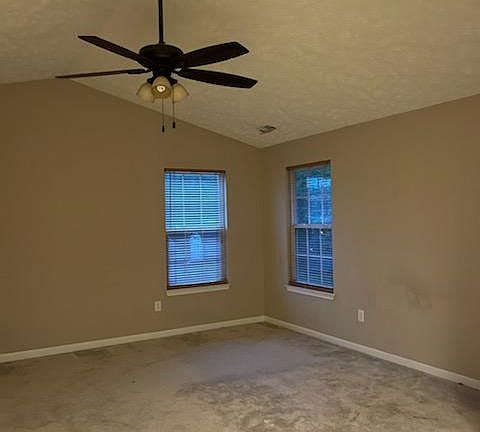 Huge high ceiling master bedroom, with jacuzzi, him and her vanities, four nice size bedrooms, 2 1/2 bathroom, granite countertop, GE profile stainless steel appliances, large living room with kitchenette area, dark red patio for summer cookout, private wooded backyard, cherry hardwood foyer, cherry wooden blinds, 2 car garage, work/study room, and dining room.