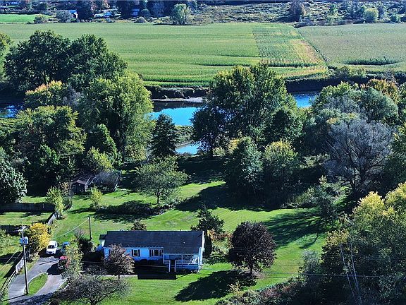 Love FISHING, BOATING, CANOEING, KAIACKING, BIRD WATCHING or just enjoy RIVER VIEWS? This is the house for YOU. A WELL-DESIGNED kitchen opens to the dining room and living room, sliding doors to the back porch. Central Air condition on those hot muggy summer days. This newer built modular (2006) home sits back away from the river with a beautiful PARK LIKE yard that leads down to the water. A large barn set up for chickens, ducks or whatever you desire. Wonderful wildflower gardens scattered about the lot and around the house. A small fishpond viewable from the back porch. A WHOLE HOUSE generator installed, turns on automatically for when or if power goes out. 2 Large sheds for storing mowing equipment, or toys, one has a workshop set up, and another structure for storage or chicken coop. Just outside the village of Bainbridge. A very short ride into town for amenities; restaurants, shops, post office or a quick connection to I 88. The homeowner pays $1936 for 2025 for Flood Insurance and policy is transferable.