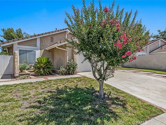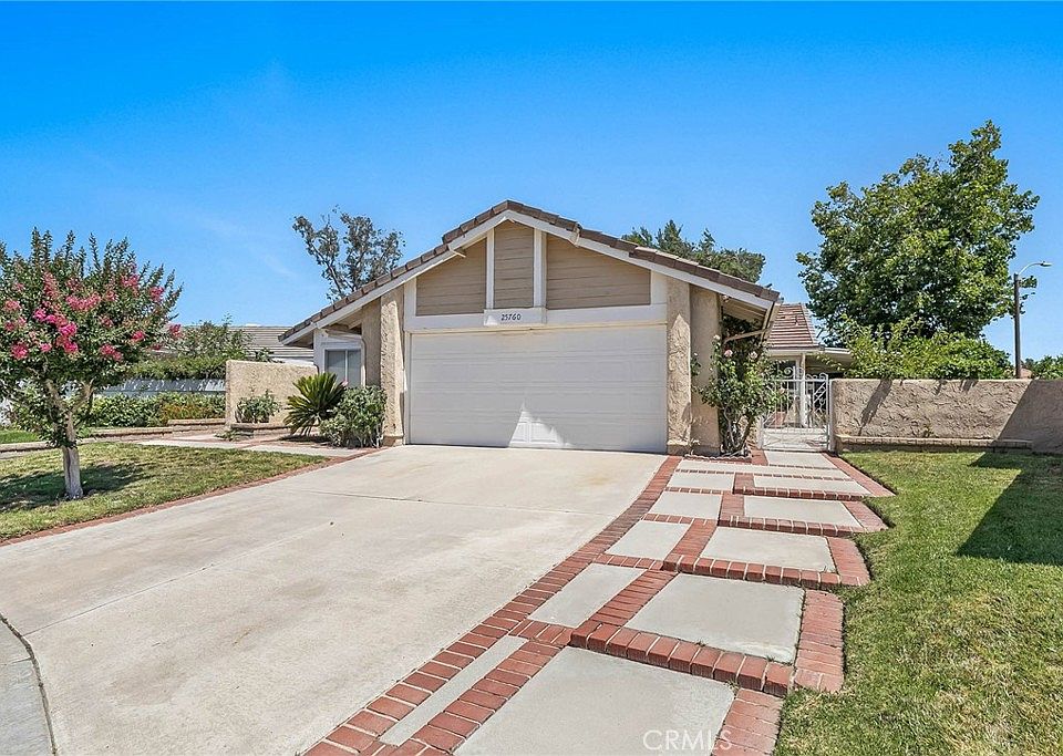 Welcome to one of the largest models of highly desirable Discovery Tract homes. FIRST TIME ON THE MARKET! A single story 4 bedroom home located on cul-de-sac of the quite street of Rancho Adobe in Valencia! Location does not get any better than the Granary Squares neighborhood with it's miles and miles of lit and landscaped famous paseo walking and biking trails, award-winning schools, walking distance to the beautiful Westfield Town-Center, Kohl's, Whole Foods Market, Starbucks, wonderful parks, shopping, restaurants, hospital and easy access to 5 and 14 FWY. Located at the end of a cul-de-sac, on a sweeping corner lot with tremendous curb appeal, long driveway, hardscape with brick boarders, and it's one of a kind large yard highlighted with lots of beautiful mature fruit trees, citrus trees, and gated courtyard entry is this beautiful 4 bedroom, 2 bath single story home. As you enter the property, you will be greeted by the warm and inviting family room that boosts a brick fire place (with gas starter) vaulted ceilings and sliding door to the backyard. Open kitchen with abundance of oak cabinets and counterspace as well as s breakfast bar. Separate dining area that is open to the kitchen with windows overlooking the large backyard. The oversize primary bedroom has vaulted ceiling and sliding glass door leading to the spacious backyard. The ensuite has Dual sinks and a standing shower. Three additional bedrooms and bathroom with tub/shower combination and double sinks complete the interior of this beautiful home. Step outside to the large wraparound tranquil backyard (with plenty of room for a pool or additions) with lush landscaping & covered patio that is completely private for entertaining. A perfect retreat to enjoy not only for all the organic fruit's that you will be enjoying all year long, but also the serenity will be appreciated for years to come. Other features of this home are, attached two car garage with direct access, copper plumbing, dual paned windows, central AC & heating system, ceiling fans, mirrored closet doors, recess lights & tile roof. HOA amenities include three Association pools, parks and picnic areas within walking distance of the property. LOW HOA and NO MELLO ROOS.