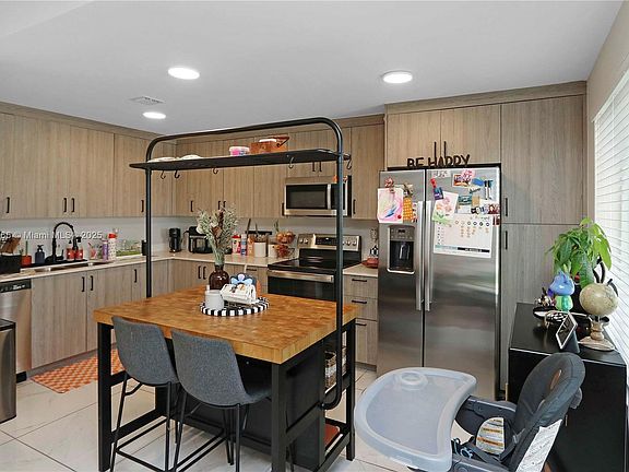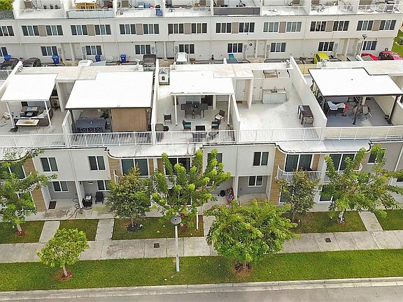 Modern 2021-built townhouse featuring 4 bedrooms, 3.5 baths, and a stunning rooftop skyview terrace. The first-floor bedroom with a private entrance can serve as an in-law suite or efficiency for extra income. Enjoy impact windows & doors, elegant porcelain tile throughout, and a sleek open kitchen with stainless steel appliances, quartz countertops, and upgraded cabinetry with moldings. The owner’s suite boasts a custom-built walk-in closet. The second floor offers another spacious master with walk-in, plus washer & dryer included. Additional highlights: tankless water heater, private balcony, and a large rooftop terrace perfect for entertaining. FHA approved, low HOA, no CDD, and pet-friendly community with easy access to Turnpike and US1.