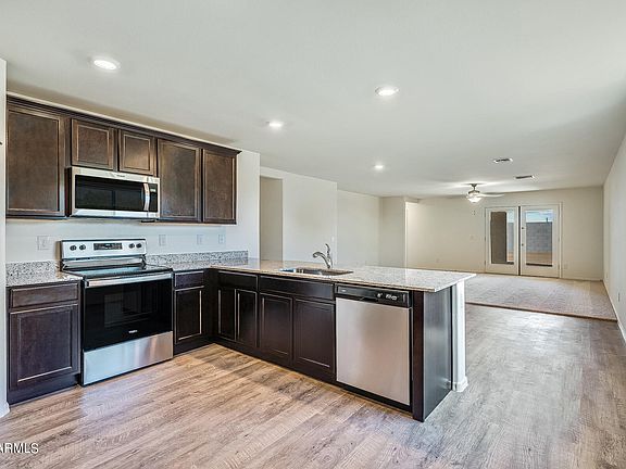 Terravista features the incredible Prescott floor plan with 3 bedrooms, 2 bathrooms, and a 2-car garage. This floor plan includes a front den, spacious family room, covered back patio, private back yard, and so many upgrades you'll love! Utilize the front den as a dining space, home office, or craft room – the opportunities are endless. With a spacious family room connected to the incredible kitchen, you'll have the perfect space for hosting get-togethers and watch parties with family and friends.