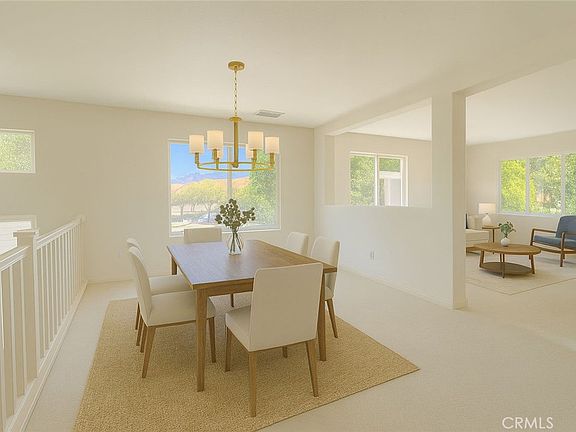 The bright and airy living spaces include a large dining area that overlooks the cozy living room, highlighted by a gas-burning fireplace. Neutral tones throughout, with light tile flooring and plush carpet, custom window treatments, create a warm and move-in-ready atmosphere.