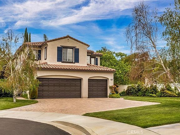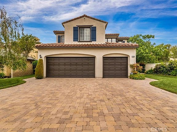 Welcome to this beautiful Executive Pool Home in the highly coveted neighborhood of upper Stevenson Ranch situated at the end of a cul-de-sac. From the moment you arrive, you will immediately notice the picture-perfect curb appeal adorned with meticulously manicured landscaping, oversized driveway with decorative pavers and a sprawling front yard. Spanning nearly 3,000 square feet, this home boasts four bedrooms, a convenient downstairs office (could be a 5th bedroom,) three baths (one down,) formal living and dining areas, great room, spacious remodeled laundry room, and upgrades throughout. As you walk in you will notice the soaring cathedral ceilings, beautiful wood flooring, plantation shutters, and several windows flooding the space with natural light. The heart of the home lies in the expansive updated kitchen including a wealth of cabinetry, walk in pantry, travertine backsplash, granite counters, spacious center island, breakfast nook and a built in buffet with coordinating counters. The dining room is highlighted by a gorgeous double chandelier and views of the backyard. Entertain with ease in the large great room with a cozy fireplace, custom built ins and easy access to your private oasis. Upstairs, you will find the luxurious primary suite that is generous in size, enjoys views of the surrounding landscape and has two large walk in closets with custom organizers. Indulge in the spa-inspired ensuite bath, complete with dual sinks, two vanity areas, an oversized soaking tub, and a separate walk in shower. The secondary bedrooms are generously sized and offer ample closet space. The hall bath features dual sinks and a private shower room. Step outside and discover a captivating entertainer's space featuring a huge 10,000+ sq ft lot with a large patio, gorgeous pool, spa, water slide, and a huge side yard perfect for a dog run or play area. You will love the tranquil and relaxing multiple sitting areas to enjoy those warm Summer evenings. Don't miss the modern conveniences including an extremely efficient OWNED solar system, upgraded HVAC and a three car garage! Minutes away from shopping, Richard Rioux Park, award-winning schools, and effortless freeway access! This home embraces the essence of Southern California living at its best!
