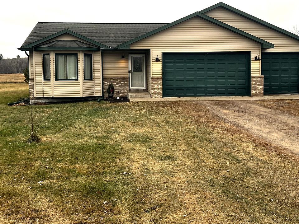 This comfortable country home offers the perfect blend of comfort and tranquility, nestled in a peaceful neighborhood. The expansive, level backyard faces south, offering views of the surrounding fields and wooded areas, making it an ideal spot for gardening, playing outdoor games, or simply soaking in the beauty of nature. A generous sized deck, recently stained and accessible from the kitchen and dining areas, provides a welcoming space for grilling and entertaining guests. Inside, the home features open concept living with soaring vaulted ceilings and a bay window that fills the space with natural light. The kitchen is equipped with a convenient pantry, while the laundry room is conveniently located near the main floor bedrooms, complemented by several walk-in closets for ample storage. Recent enhancements include sleek black stainless steel appliances and new luxury vinyl plank flooring in the bedrooms. The lower level boasts a spacious primary bedroom, complete with a finished half bath and shower rough-in, along with a closet area that awaits your personal touch. Additionally, there is a non-conforming bedroom where an egress window could easily be added making this a legal four bedroom home. With abundant storage options and a large, finished, insulated three-stall garage, there is plenty of room for a workshop and recreational equipment. Embrace the joys of country living while enjoying the friendly atmosphere of this wonderful neighborhood. Watch for professional photos coming soon.