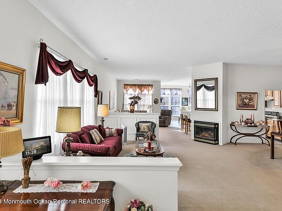 REDUCED! Four Seasons at Wall, a premier active adult community, offers this pristine 3 bedroom, 2 bath Danbury Model. Open floor plan with an extended sunroom. Neutral colors throughout. Spacious living & dining room perfect for entertaining w/ a gas fireplace. The cozy family room offers a built-in for the included T.V. An eat-in kitchen with an attached sunroom that leads to the private paver patio backing up to the woods. Perfect for your morning coffee. The master suite offers a large walk-in closet as well as a sitting area to relax. State-of-the-art clubhouse, indoor & outdoor pool, gated entry, exercise room, theater, billiards, tennis courts, bocce & so much more to accommodate your active lifestyle. Enjoy the good life at Four Seasons at Wall in this impeccable home.