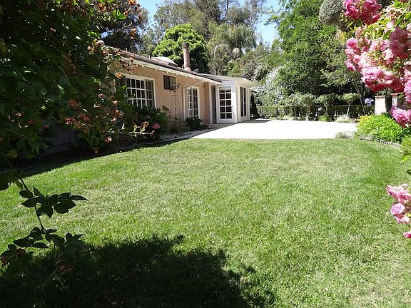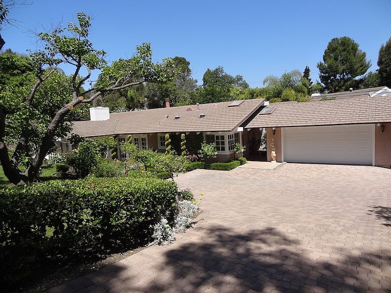 Significant Price Reduction. This beautiful Ranch style home is great for family and entertaining. The spacious 2,292 SF (Buyer To Verify), bright and light single level home has 3 bedrooms and 2 baths. The gourmet kitchen, island, breakfast nook, custom cabinetry, granite counters, Sub-Zero, Thermador gas double oven, gas stove with pot filler, is perfect for the serious cook. The open living and dining areas have crystal chandeliers, vaulted ceiling and added sun room. The family room has gas fireplace and French doors that open to a private patio. The landscaped grounds have a variety of fruit trees and "water scapes." The property has an expansive paving stone driveway, cement shake roofing tiles, central air conditioning and new automatic garage door for 2 car garage.