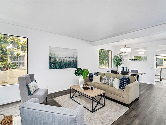Resort-like living in the highly sought after "Windemere on the Green" Community. Upon entering the serene setting of the complex, you will be greeted by mature trees and lush landscaping. This tastefully upgraded END UNIT townhome enjoys new laminate wood-like flooring throughout the first floor, a gorgeous eat-in kitchen featuring brand new cabinets, quartz counter tops, a stylish tile back splash, a new stainless steel dishwasher & range, recessed lighting, and a cool, modern light fixture. Additionally, the open floor plan offers a half bath, a spacious living room with a cozy fireplace adjacent to a dining area, offering plenty of windows and space to entertain. The generously sized outside patio can be accessed through the living room, perfect for dining al fresco, relaxing, or just enjoying the trees. As you ascend the stairs to the top floor, you can't help but notice the sparkly new light fixtures and new carpeting. The master suite includes new carpet, a double door walk in closet, an en-suite w/ double vanity sinks, & an updated shower. The second bedroom enjoys new carpet & its own full bath. New paint throughout the living space, and an over-sized 2 car garage with plenty of storage space, finish off this cozy home. The HOA amenities include a 24-hour guard gate, a clubhouse, a large swim pool, lap pool, & spa, a BBQ area, playground, exercise room, basic cable & internet, and more! Ideally located near shopping, Wilson Park and plenty of restaurants.