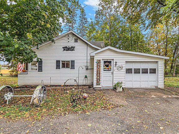 The property is a haven for outdoor enthusiasts, featuring a 1-car attached garage, a large detached pole barn, and two fenced pastures (2-acre and ¼-acre) complete with a horse lean-to and tack area. A chicken coop, mature apple trees, and raspberry bushes provide a taste of self-sufficient living. With nearby agricultural fields attracting wildlife, the open acreage also offers excellent potential as a hunting retreat.