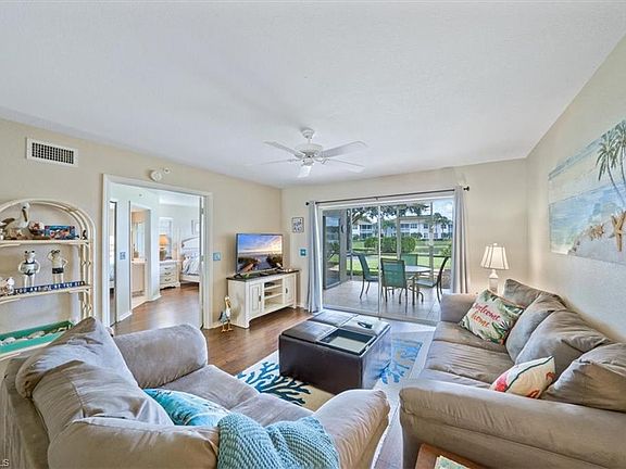 C7051. When only the best will do. This ground floor end unit boasts more square footage and an amazing private courtyard that the owners of other units wish they had. Offered turnkey, this split bedroom floorplan with a den provides abundant space for you and your guests to relax and recharge. Whether enjoying a BBQ in your private walled courtyard or a relaxing evening in your screened lanai with an unbeatable lake view, you will feel like you are in your own private oasis in paradise. This unit is suitable as an investment with proven income or as your own personal full time home or getaway. This home includes a detached 1 car garage with additional storage space (bonus storage space above garage). Stepping out of your home, you will find all the amenities that you would expect in a great SW Florida condo. Renovated clubhouse, 2 pools, 2 spas, BBQ area, social room, billiards, fitness room, tennis, pickleball & shuffleboard. Community is pet friendly, less than 7 miles away from one of the most beautiful beaches in SW Florida, less than 10 miles away from the vibrant and famous Mercato (a shopping & dining destination) and the perfect place for your Florida adventure to start!