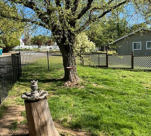 Looking for a great place to live with all the quiet charm of country life but close in to Placerville? This cozy home sits on over one acre yet is conveniently located just a five-minute drive from town, stores, restaurants and services. Come home to lovely local views with large oak trees, colorful sunsets, a nice carport with covered front porch mere steps away, plus small side deck where you can sit and watch the neighborhood deer graze and frolic. There is a sizeable walk-in storage room beneath house, plus a full-sized storage container off your paved, circular drive. The front yard is enclosed in five-foot iron fencing for private access and pet enclosure. Side yards are also fenced. The interior features remodeled kitchen and bathrooms, plus inviting living room with brick wood-burning fireplace hearth. NO TOURS OF PROPERTY UNTIL AFTER SEPTEMBER 15TH WHEN VACANT. DO NOT DISTURB CURRENT TENANTS PLEASE. If tenants are disturbed, your application cannot be considered. Excellent references from prior landlords required, and high credit scores only, please. Twelve-month lease required. Owner pays for water up to $75 monthly. Tenant responsible for propane and electricity. Pets require landlord approval in advance and pet deposit required. Strictly no smoking property. Tenant responsible for keeping weeds, dead foliage, etc. cleared in at least 100 feet perimeter surrounding property plus one-time annual mowing of weed growth on full acre. Large container to be used only for personal property storage or as a hobby workspace. No vehicle repairs by tenant on property other than standard and typical maintenance. Maximum of two tenant vehicles without landlord approval.