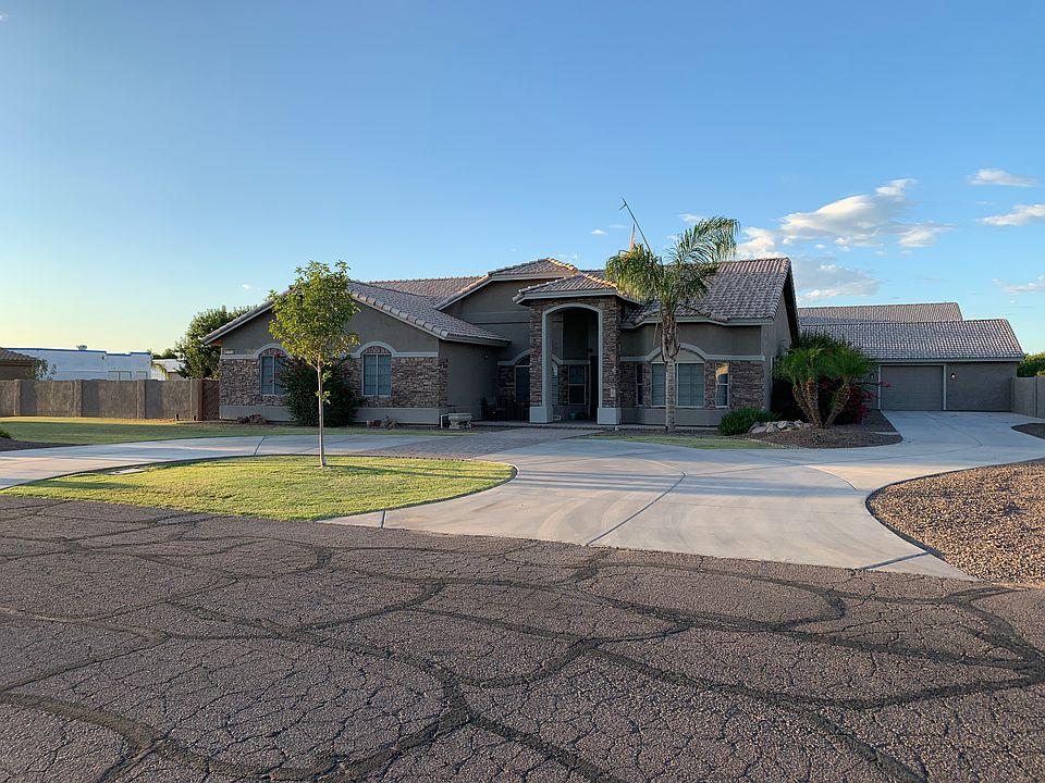 Fully updated custom horse property located on 1.4 acres, less than 2 miles from 202, NO HOA. Exterior and border wall transformed 8/2020 w/ 15 yr New synthetic stucco, paint, and design. 2300 SF Double RV garage (built 2016) and 3-car garage now complete with EPOXY flooring and new look. 5 beds w/ private baths, 2 laundry rooms, updated gourmet kitchen w/ 10' granite island, plethora of storage + large walk-in pantry. Media closet controls technology throughout, New fixtures, retractable patio glass door, and gas fireplace. Horse facilities include 3 stalls, irrigated fenced pasture, and horse trailer loading area. 750 SF casita w/ full kitchen complete with it's own game room above. Private electric gate access to back + removable pool fence and ramada w/ grill & TV. A Must See