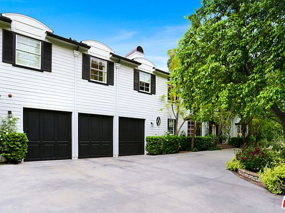 Stunning East Coast Traditional with designer touches situated on approx. half an acre of lush grounds. A completely private estate behind large gates with huge motor court and parking for multiple cars. Fabulous floor plan features five upstairs bedroom suites including an extravagant master with two huge walk in closets. Other features include upgraded gourmet kitchen opening to family room, formal living and dining rooms, walnut wood floors and French doors leading to a large yard and outdoor living spaces. Maids suite down with bonus room (office) off the garden. The grounds feature flat grass pads, playground, and a large pool and spa. Enjoy the amazing indoor / outdoor living the LA has to offer.