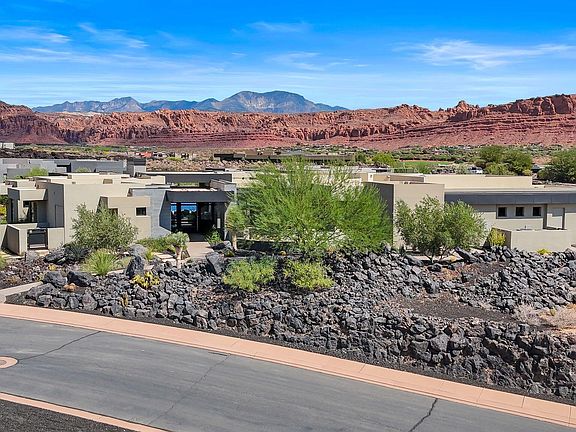 ***Furniture Package, TV's & Electronics Included** This gem is what you've been looking for! A true Entrada masterpiece, nestled in the desirable and prestigious lava rock of Chaco West at Entrada. This magnificent home sits on 1.15 acres on a quiet cul-de-sac street, boasting breathtaking views including Snow Canyon, Pine Valley Mountain and Red Mountain. Chef's kitchen complete with SubZero refrigerator/freezer, Wolf oven, Wolf steam oven, Wolf range top, 2 Miele dishwashers, beverage cooler and additional refrigerator/freezer in prep kitchen. Private Casita with beverage cooler and full size washer/dryer. Smart home features include Lutron lighting, Lutron shades, nest thermostats, security system with cameras, Sonos (inside and outside). Skylights and clerestory windows throughout fill this home with natural light. Custom salt water swimming pool with spa, water features, and retractable cover; additional space for putting range at back of property if one desires. 4 car garage (separate garage entrance for golf cart) includes built in storage for all of your toys and golf clubs; equipped with plug-in for an electric car. Custom chandeliers by Hammerton studio....no upgrade was overlooked in this home. Designed by Rob McQuay and built by Shakespeare Development - this home is sure to impress!