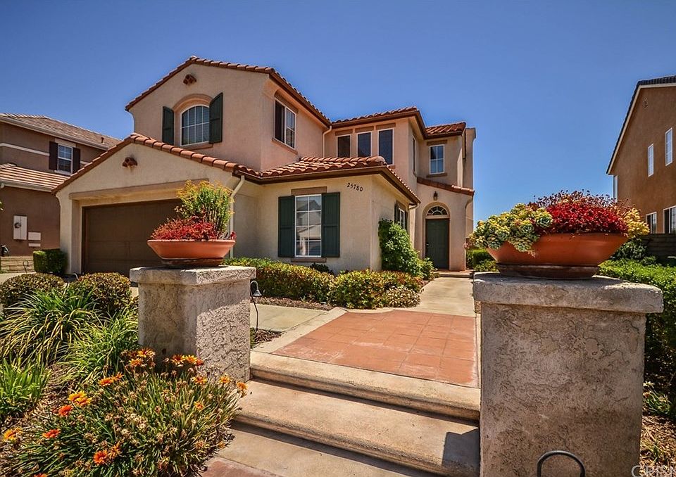 Priced to Sell! Gorgeous Stevenson Ranch View Home with 3 bd, 3 ba, loft upstairs which can be converted to be 4th bedroom, and den downstairs which can be easily converted to 5th bedroom. This fantastic former model home has lots of amenities such as soaring high ceiling with bright and light open floor plan, custom tile and paint, shutters, leaded windows, recessed lighting. Great living room, Spacious kitchen with island and custom tile, Family room with fireplace. Gorgeous Master bedroom with walk-in closet, Master bathroom with bath tub and separate shower stall. Side by side two car garage and extra storage space with direct access and long driveway. Terrific view in the large, really large backyard. Very convenient location close to Blue Ribbon award school, community park, basket ball and tennis court, shopping centers, freeway and much more! This is Must See home. You'll love living here.