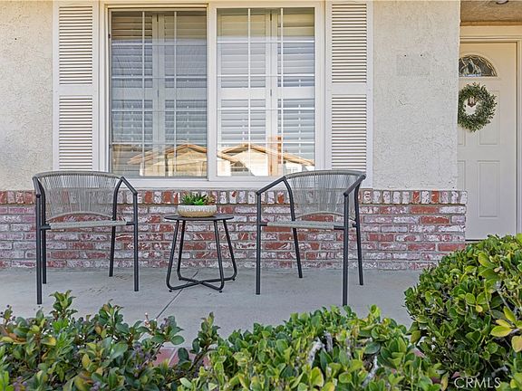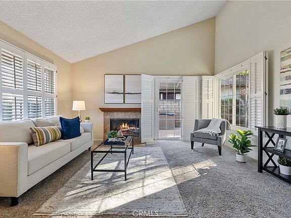 Welcome to this charming 3 bedroom 2 bath single story home tucked away on a peaceful cul de sac in the heart of Valencia. Offering 1,196 square feet of comfortable living space this lovely home boasts wonderful curb appeal. Step inside to a bright living room featuring beautiful windows bringing in natural light, vaulted ceilings, and a cozy fireplace with a beautiful mantel perfect for relaxing evenings. The separate dining area opens to a well-designed kitchen with granite countertops, ample cabinetry, breakfast nook, and a functional layout ideal for everyday living. Down the hall, you will find one bedroom (currently used as an office), second bedroom, and a full bathroom. The spacious primary bedroom includes a large closet, and sliding door leading to a patio area, and an en suite bath with walk-in shower for added convenience. Additional highlights include newer dual-pane windows, plantation shutters, ceiling fans, and 2 car direct access garage. The home also features a lovely attached sunroom, perfect for additional living or entertaining space. The private backyard includes a charming arched trellis-covered seating area, lush landscaping, planters, and a grassy area ideal for relaxing or entertaining. While already well-loved, this home offers a wonderful opportunity for a new owner to add their personal touches to make it truly shine. Perfectly situated in a highly desirable central Valencia location near College of the Canyons, CalArts, shopping, golf, restaurants, highly rated schools, and freeways. NO HOA or Mello Roos. Such a great home!