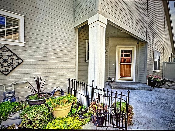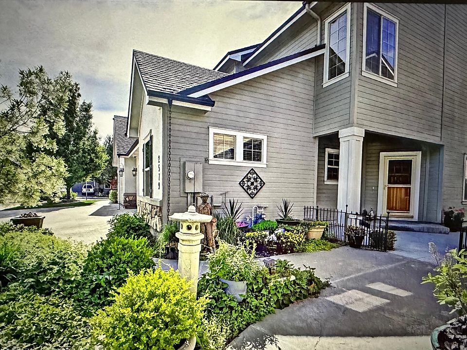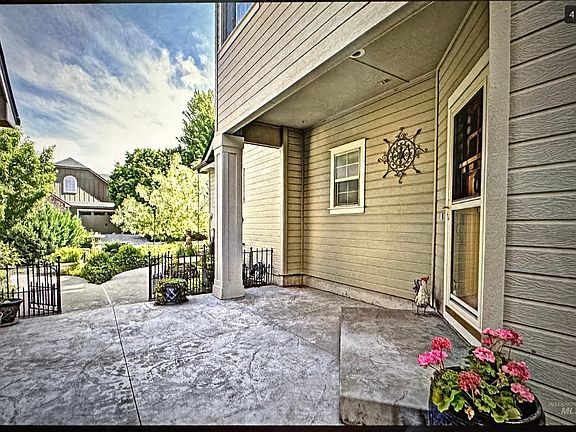 This townhome conveniently located near all the great shopping and "The Village of Meridian," yet in a very quiet neighborhood and across the way the community park. This home will greet you to a refinished unstained cherry hardwood floor. The kitchen boasts slate granite with lots of counter space, stainless steel refrigerator and a double oven. There is a large living and dining room with a fireplace. On the first floor is also the master bedroom with a walk in closet, bath tub to soak along with a separate shower and private water closet and dual vanities. Also on the first floor and on the other side of the unit is a guest bed and full bathroom with a jacuzzi style walk in tub. On the upper floor, there is a large bonus room plus what could be used either as an office or another bedroom and a full bathroom. There is a private patio that's partially covered with a garden area. The garage is deep with plenty of storage and a workbench. A washer and dryer in a separate laundry room is included too just behind the kitchen. The Champion Village community park is practically across the street.