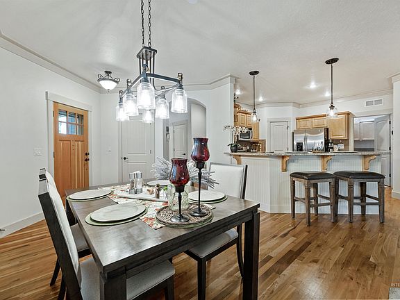 Ask about 1.25% credit for using preferred lender. AMAZING LOCATION!!! Just west of Eagle Rd/Ustick Rd intersection, this Todd Campbell built home sits just a 3 min drive (see aerial photos) to the Meridian Village and LOTS of retail, grocery, and home improvement, dining and takeout!!! Low maintenance, well cared for and picturesque, this home sits in the quiet and sought after Champion Village. Open concept with main floor primary bedroom and bathroom along with main floor guest bedroom and full bathroom! Second floor features it's own living area, bedroom, and full bathroom! Retreat for a meal to your covered patio complete with ceiling fan! Walk 50 yards down and across the street to the walking path to the HUGE and WELL maintained Champion Park (see aerials) that features a walking path around, two basketball courts, play equipment, bathrooms, drinking fountains, covered pavilion, and parking lot perfect for when those extra guests are coming! Welcome Home!