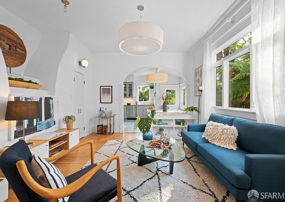 Beneath the canopy of Chinese Elms along Folsom Street, this first floor Victorian condo redefines urban living. With power lines buried underground, the streetscape is strikingly serene all you see are the graceful green arches of the trees above. Set on an oversized 3,675 sq.ft. lot, the fully detached unit lives like a stand-alone home -bright, inviting, & brimming with period character. Oversized windows & a desirable setback from the property line bathe the interiors in natural light & frame enticing outlooks to the lush gardens in front & behind. This two-bedroom, one-bath residence blends historic detail with thoughtful updates. Built-ins in the living room, an updated kitchen with a suite of Bertazzoni appliances, a banquette, & deep soaking tub in the modern bathroom. Step directly from the kitchen into the home's colorful garden, a true urban oasis with a patio, mature plantings & an expansive stretch of grass. There is laundry & storage in a nearby outbuilding. Parking is technically tandem, though the current owners alternate driveway use. Just steps from the Mission's best restaurants, bars, shops & the Thursday Farmer's Market & a few blocks to BART-this condo delivers the best of SF living: charm, light, & connection. Walk Score 98|Transit Score 85 |Bike Score 100.
