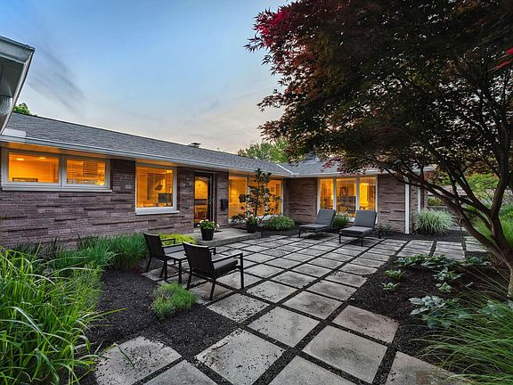 SPRAWLING Mid Century ranch located on a large corner lot! The front courtyard is full of beautiful blooming flowers & the brick retaining wall provides extra privacy as you sit & enjoy a glass of wine. Inside has dark hardwood floors that flow throughout, a fully updated kitchen that has concrete countertops & a large kitchen island that is open to the dining room & living room. There are extra large windows throughout the home that let in a ton of natural light in each room. There are 2 bedrooms that have ensuite bathrooms. The owners suite in the back of the home has a large attached bathroom with heated floors, walk-in shower with bench & a double vanity. All the closets have custom built-ins. The laundry room is large & there is a large storage room. The back patio is very private.