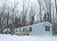 Hardwoods and pines surround this 3 BD, 2 BA mobile home 1 mile from Lake Huron.