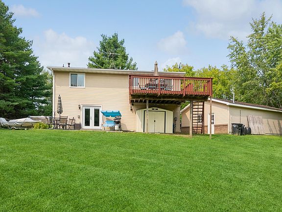 Home located on the southern outskirts of Lindstrom in a peaceful neighborhood which is on a dead end road where nature abounds with 1/17 interest deeded access to Spider lake. This attractive split level with walk-out lower level home offers 3 bedrooms, 2 bathrooms and a 3 car heated and insulated garage on a beautiful 1.75 acre wooded lot. Many recent updates including custom kitchen cabinetry, island,sink, built in double oven, countertops, stovetop, dishwasher, plumbing fixtures & lights, windows & patio doors, flooring, bathrooms, furnace & AC, water heater, washer & dryer, concrete garage slab and stamped patio-sidewalk and more (see supplement). Must See!