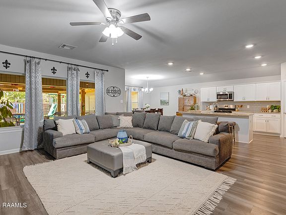 Welcome to 258 Antigua... your next ''Home Sweet Home.'' This beautiful home has plenty to offer. The exterior of this home is stunning and has a widened driveway, upgraded gutters around the entire home, a leveled fully sodded yard, and 20' and double gate access on both sides of the yard. The inside features an open kitchen/living area. The kitchen has all new hardware and a new garbage disposal. There are 4 bedrooms with multiple walk in closets that each have lighting. The large owners suite has an attached master bathroom with a large walk in closet. There is a second switch in master closet and bathroom. All bedrooms and living room have ceiling fans. The home has a security system under monitoring contract until 2024 with a camera in living room with 2 way audio, a video doorbell with 2 way audio, and front & back yard cameras. The backyard is the perfect oasis as it is enclosed with a 6' privacy fence and has a large covered & attached veranda constructed in 2019. The covered area measures 24' x 34' and has 3 high power fans with dimmable lights that are remote controlled. There are festive lights lining the perimeter of the covering, power for TV/Alexa & pull down blinds. The back yard also features a gorgeous saltwater fiberglass pool installed in 2020 with a ceramic tile interior border, clay brick coping, and new filter. The attic has plywood laid for extra storage and there is also 6' x 18' enclosed storage outdoors with power available. Schedule your private tour of this immaculate home today!! camera in living room with 2 way audio, a video doorbell with 2 way audio, and front & back yard cameras. The backyard is the perfect oasis as it is enclosed with a 6' privacy fence and has a large covered & attached veranda constructed in 2019. The covered area measures 24' x 34' and has 3 high power fans with dimmable lights that are remote controlled. There are festive lights lining the perimeter of the covering, power for TV/Alexa & pull down blinds. The back yard also features a gorgeous saltwater fiberglass pool installed in 2020 with a ceramic tile interior border, clay brick coping, and new filter. The attic has plywood laid for extra storage and there is also 6' x 18' enclosed storage outdoors with power available. Schedule your private tour of this immaculate home today!! camera in living room with 2 way audio, a video doorbell with 2 way audio, and front & back yard cameras. The backyard is the perfect oasis as it is enclosed with a 6' privacy fence and has a large covered & attached veranda constructed in 2019. The covered area measures 24' x 34' and has 3 high power fans with dimmable lights that are remote controlled. There are festive lights lining the perimeter of the covering, power for TV/Alexa & pull down blinds. The back yard also features a gorgeous saltwater fiberglass pool installed in 2020 with a ceramic tile interior border, clay brick coping, and new filter. The attic has plywood laid for extra storage and there is also 6' x 18' enclosed storage outdoors with power available. Schedule your private tour of this immaculate home today!!